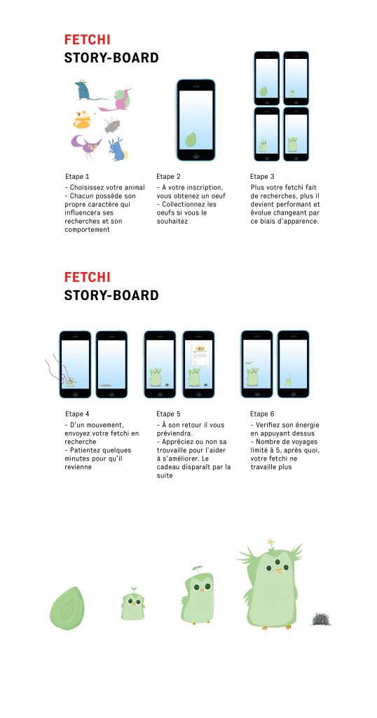 Illustration and interactional design for a fictitious application « Fetchi » made during my Masters at HEAD. We had to create a concept that focused on a user’s « daily » experience with a smartphone.